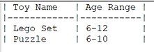 Example: To find toys suitable for ages 6 and above, we would use the SQL query: